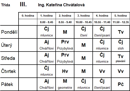 Rozvrh hodin 3. třída